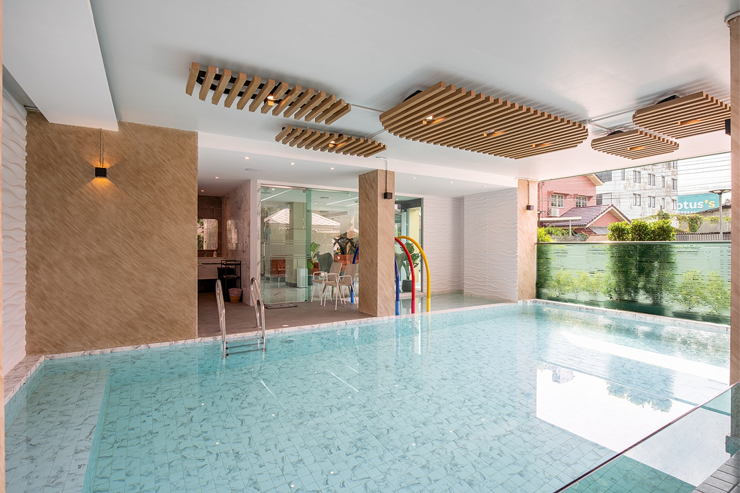 สระว่ายน้ำในร่ม เปิดให้บริการสำหรับผู้เข้าพักที่ต้องการผ่อนคลายหรือออกกำลังกายท่ามกลางบรรยากาศที่เป็นส่วนตัว สะดวกสบาย ไม่ต้องกังวลเรื่องสภาพอากาศ พร้อมดูแลความสะอาดอย่างสม่ำเสมอ เพื่อความมั่นใจตลอดการใช้งาน